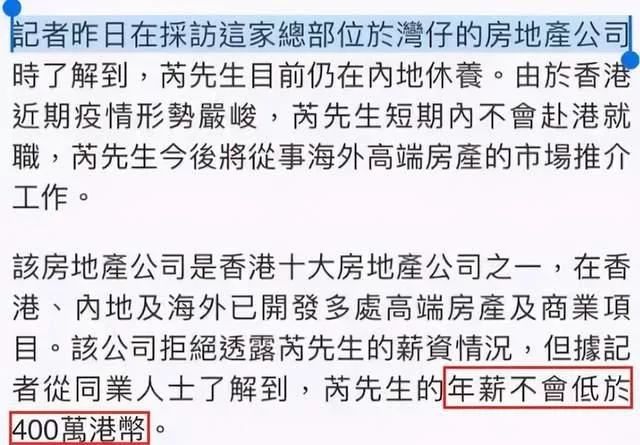 12月14日,香港财经媒体刊登一则“前内地央视主持人芮成钢刑满出狱”的消息。港媒报道称,芮成钢出狱后接受香港某上市房地产集团投来的橄榄枝,以400万港币的年薪受聘该公司,负责海外高端房产的市场推介工作。有香港记者前往芮成钢受聘这家公司位于湾仔的总部实地探访,并未见到“新员工”前来报到。据该集团工作人员透露,因为疫情形势严峻,芮先生短期内并不会赴港上任,目前其本人仍在内地家中休养调整!