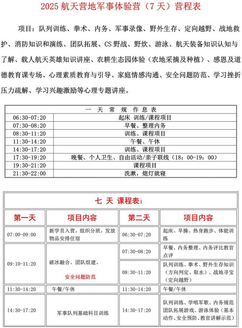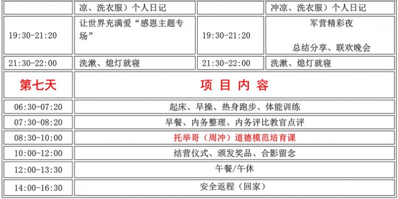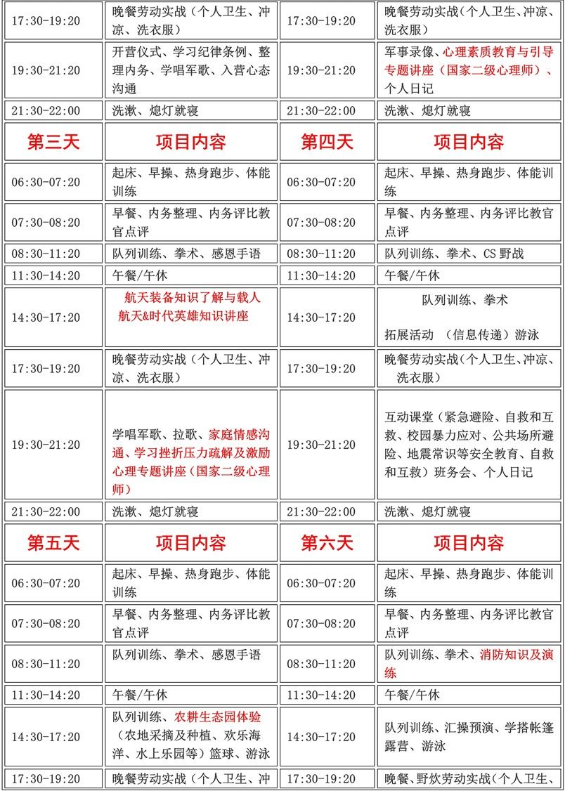 3、入营后未经营地领导同意,不得无故离营,如因个人理由提前离营恕不退费;