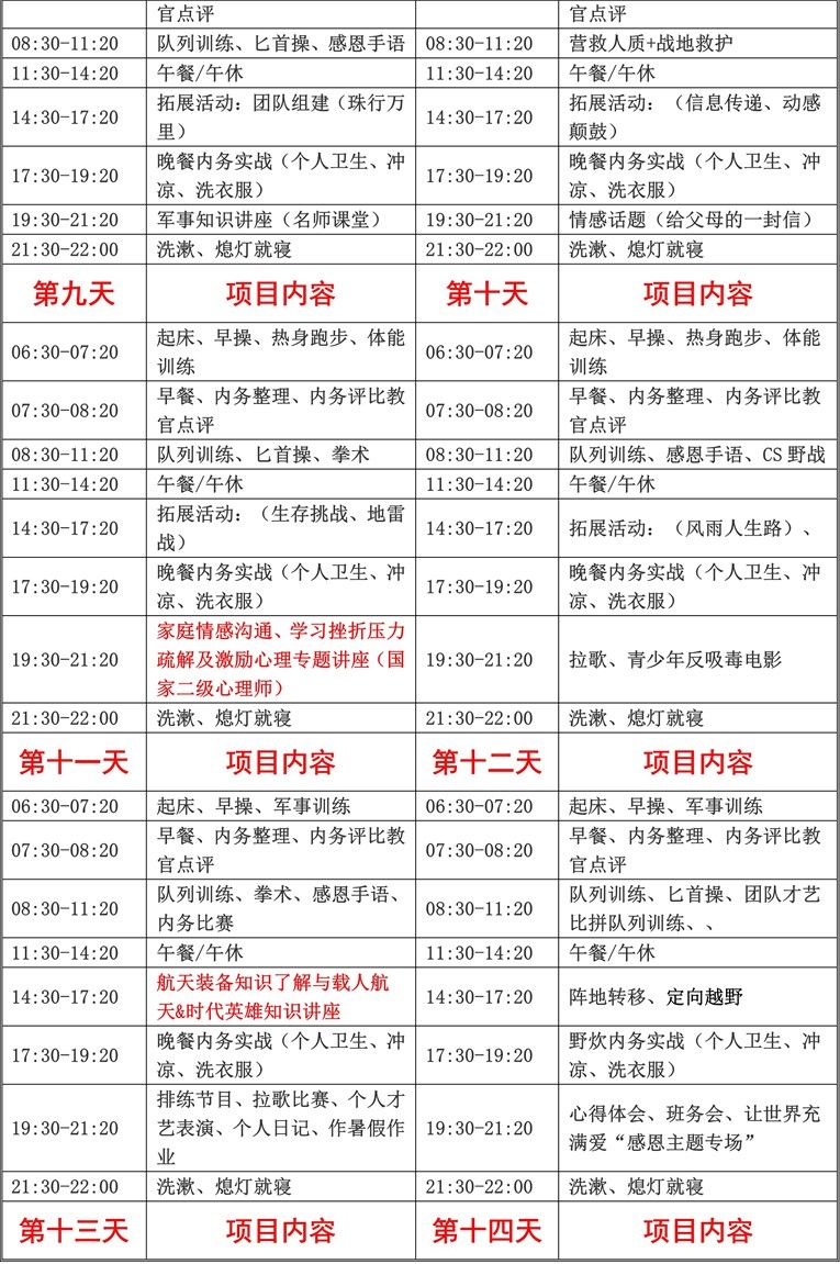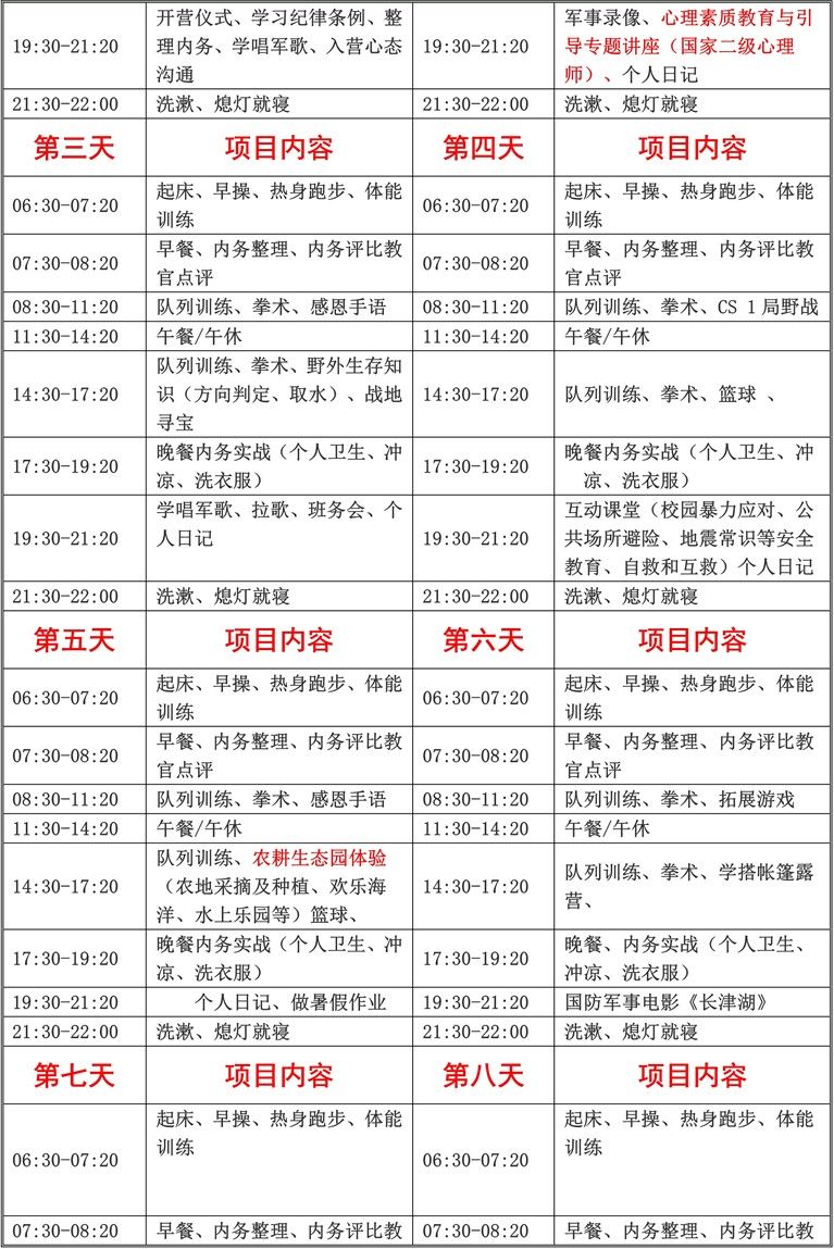 3、入营后未经营地领导同意,不得无故离营,如因个人理由提前离营恕不退费;