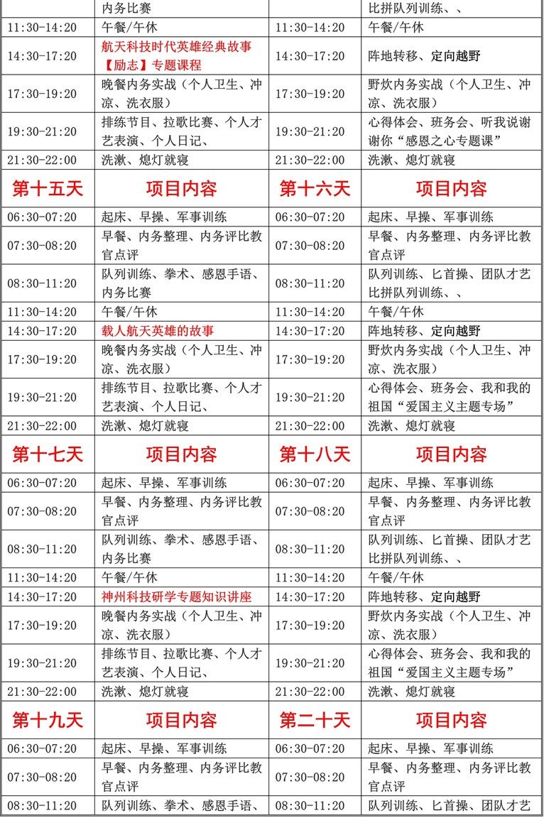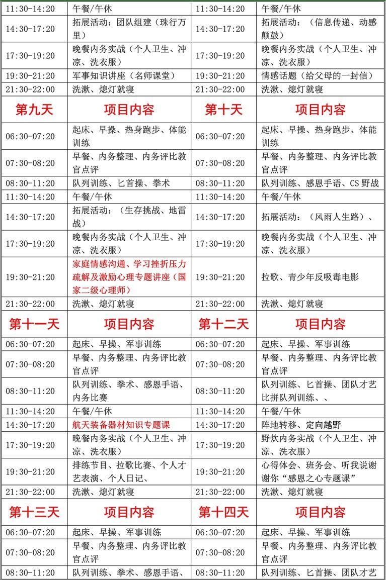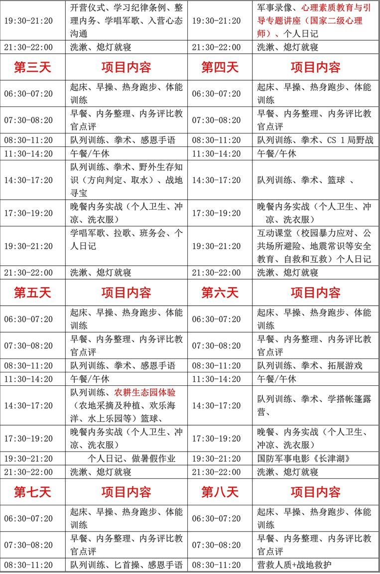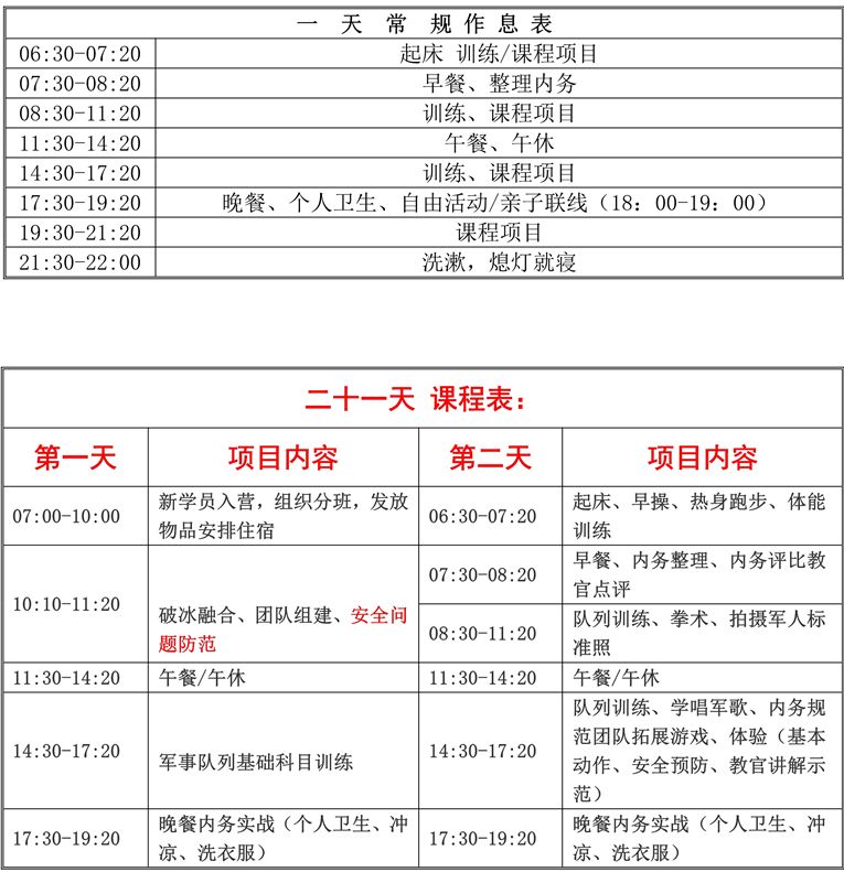 3、入营后未经营地领导同意,不得无故离营,如因个人理由提前离营恕不退费;